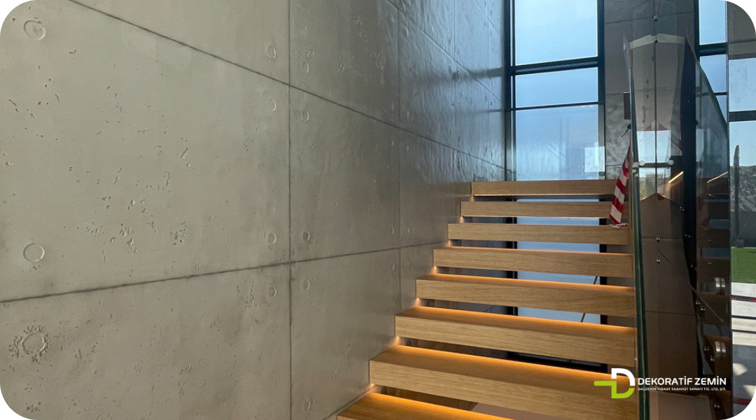 Özellik Açıklama Uygulama Kalınlığı Yaklaşık 2 mm Malzeme Sistemi Beton efektli mikro kaplama Uygulama Araçları Spatula, özel kalıp filmleri Son Kat Seçenekleri Koruyucu şeffaf sealer Yüzey Dokusu Kalıp izli, fırçalanmış, pürüzlü efektler