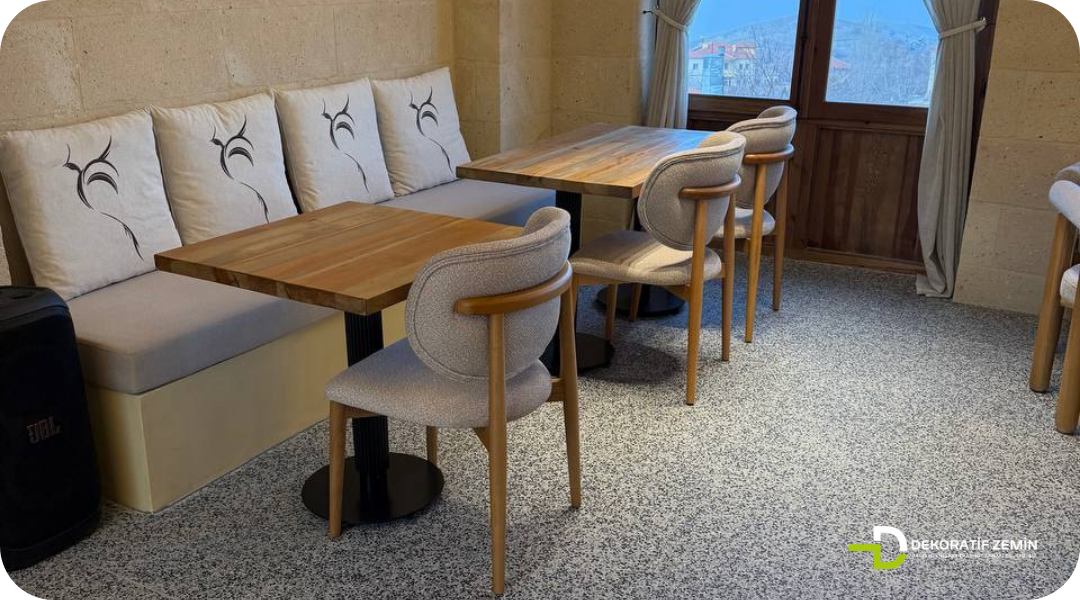Reçine esaslı bağlayıcı ile doğal agregalar, renkli cam ya da mermer gibi dekoratif parçacıkların karıştırılıp zemine uygulanmasıyla elde edilen yüksek performanslı bir zemin kaplama çözümüdür. Yaklaşık 8-10 mm arası bir kalınlıkta uygulanan bu sistem, tasarım özgürlüğü, uzun ömür ve hijyen gibi birçok avantajı aynı anda sunar.
